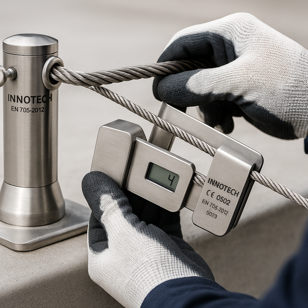 Wir prüfen Innotech-Absturzsicherungssysteme, Anschlagpunkte, Seilsysteme, Schienensysteme und Kollektivschutzanlagen – direkt am Dach oder an der Fassade, auch an schwer zugänglichen Stellen.